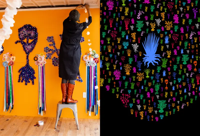 Echoes of the Codex de la Cruz-Badiano: A Floating Tapestry of Indigenous Medicinal Wisdom Blanka Amezkua, Photo credit: Meredith Mashburn @mashburnphoto